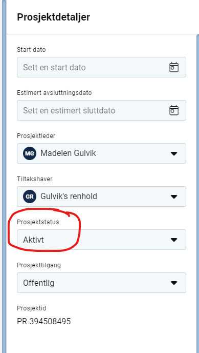 Project status can be found by going to the project, where you see project details and you can easily change the project status.